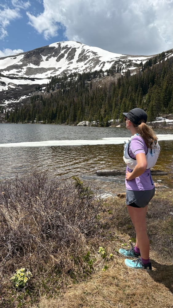 The style of the Concurve shorts and Contest Tee is really flashy and modern. I selected the scrub purple for the shirt, and it is so cute! I try to run in brighter colors when I run in the mountains for safety’s sake, and this purple does the job without being obnoxious. The shorts are like most running shorts; however, what really sets them apart is the high waistband. I think it’s really flattering, especially for me and my short torso.