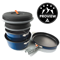 The Bugaboo Ceramic Base Camper Cookset is a great combination of pots and pans to provide you with a user-friendly car camping cooking experience. The pots and pan are non-stick, durable and have lids that fit with built-in strainers. Combine that with easy stacking and storage and they should fit into any car camping style cooking set up. Pick your own size to fit your cooking part size and needs.